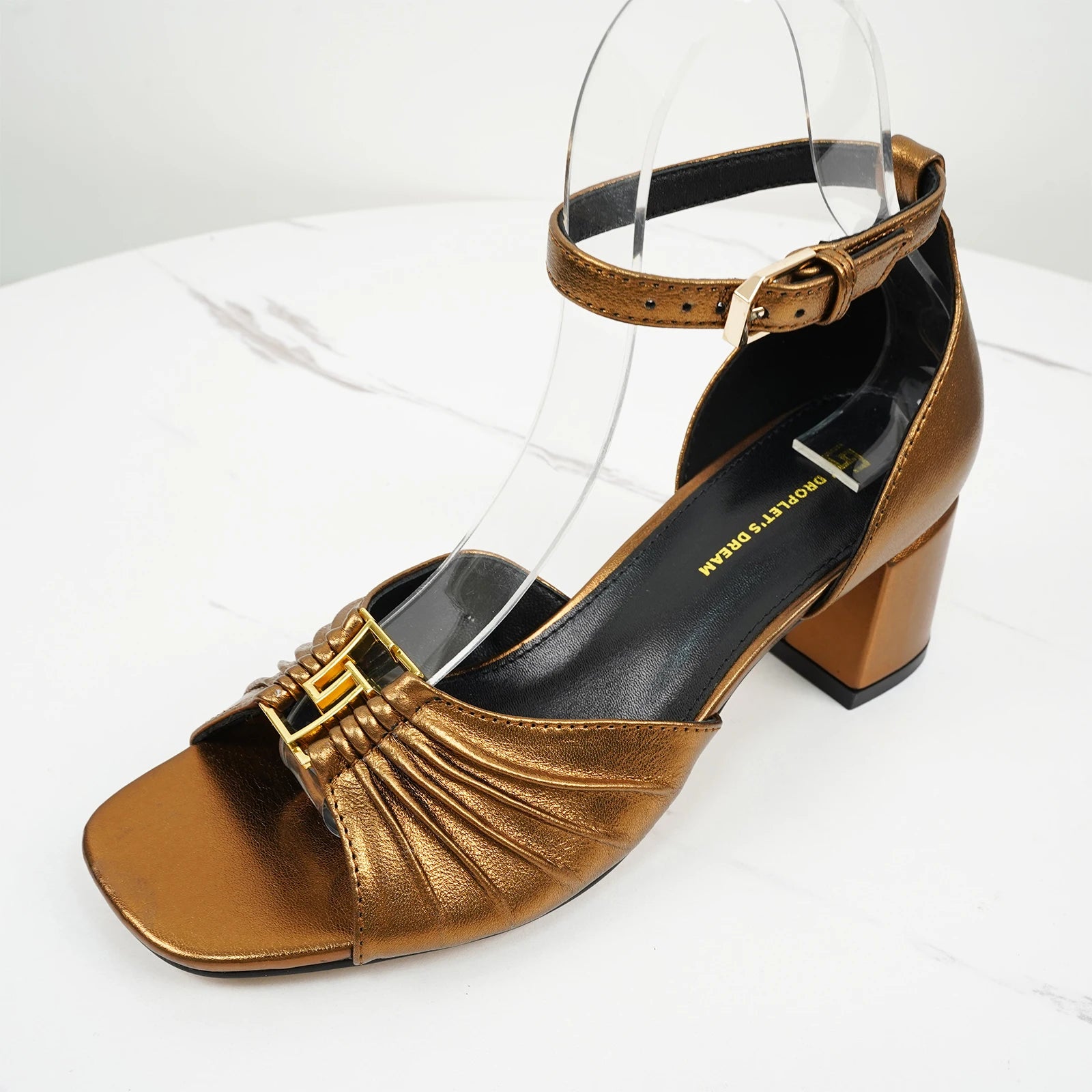 Features of the shoes: Shallow mouth,slip-on shoes,Cowhide,The heel is 6 cm high,High heeled sandals,Collocation bag,Brand new shoes,mid heel,Metal decoration,Fish mouth shoes,Bowknot,Solid color,Open toe,High Heels,Genuine Leather,Patent leather,buckle