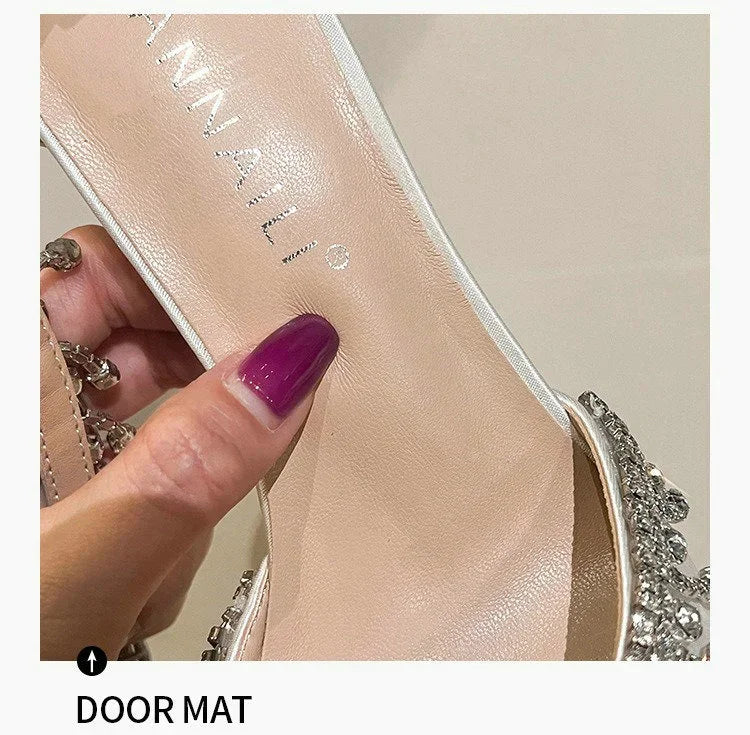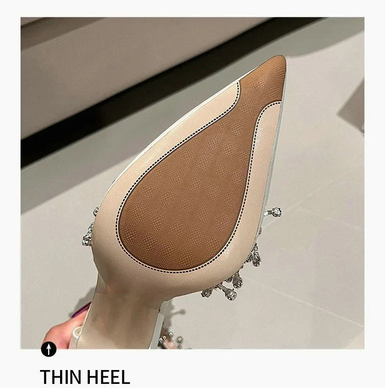 Comemore 2025 White Wedding Bridesmaid Shoes Satin Fashion Rhinestone Fringe Chain High Heels Black Temperament Elegance Pumps