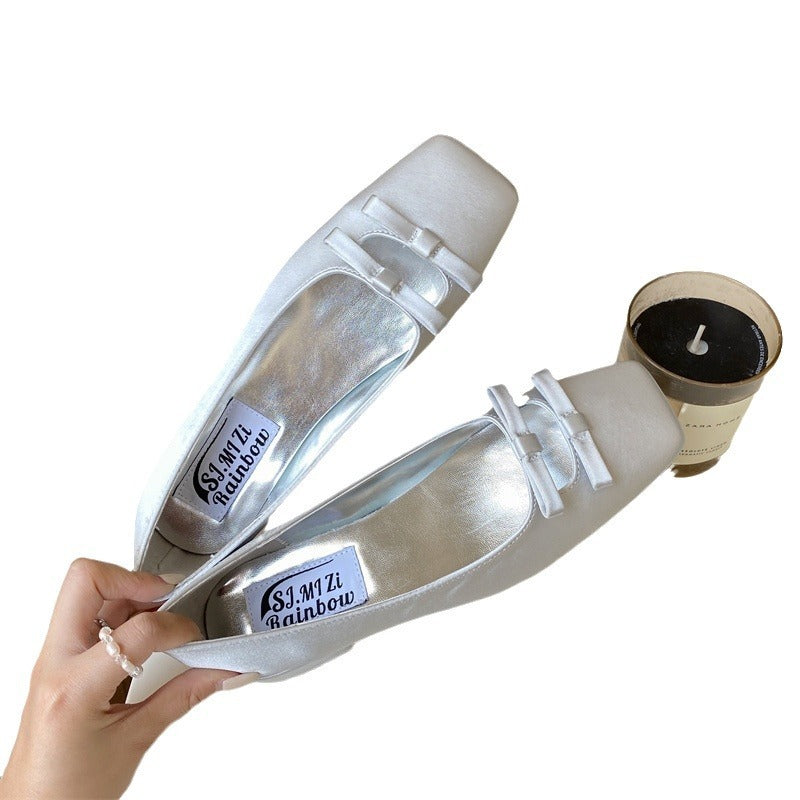 Fashion Shoes Square Head Candy Color Mary Jane Bow Low-cut Chunky Heel