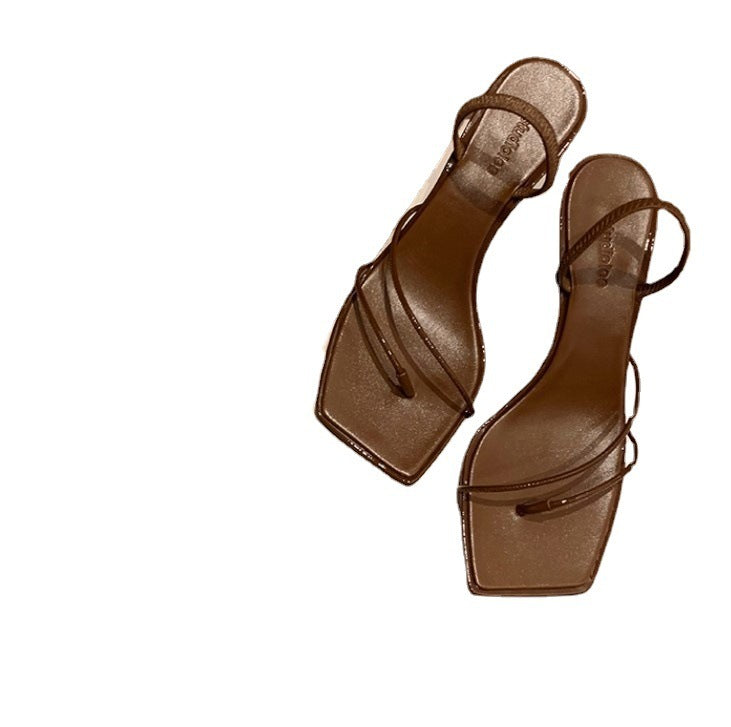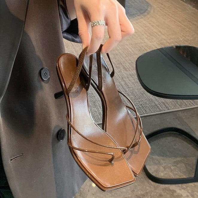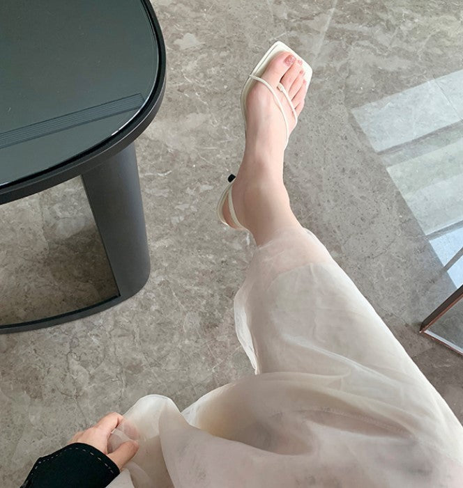 French Style Thin Strap Square Toe High Heels Flip Toe