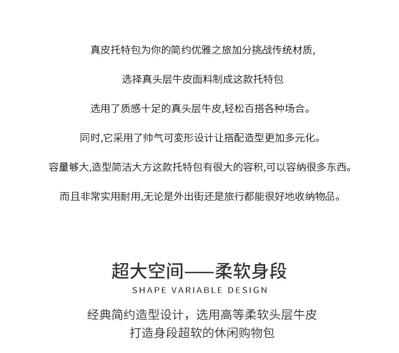 Genuine Leather Commuter Tote Bag Simple Ladies Soft Cowhide Tote Shoulder Handbag Large Capacity Women Bucket Bag 2025 New
