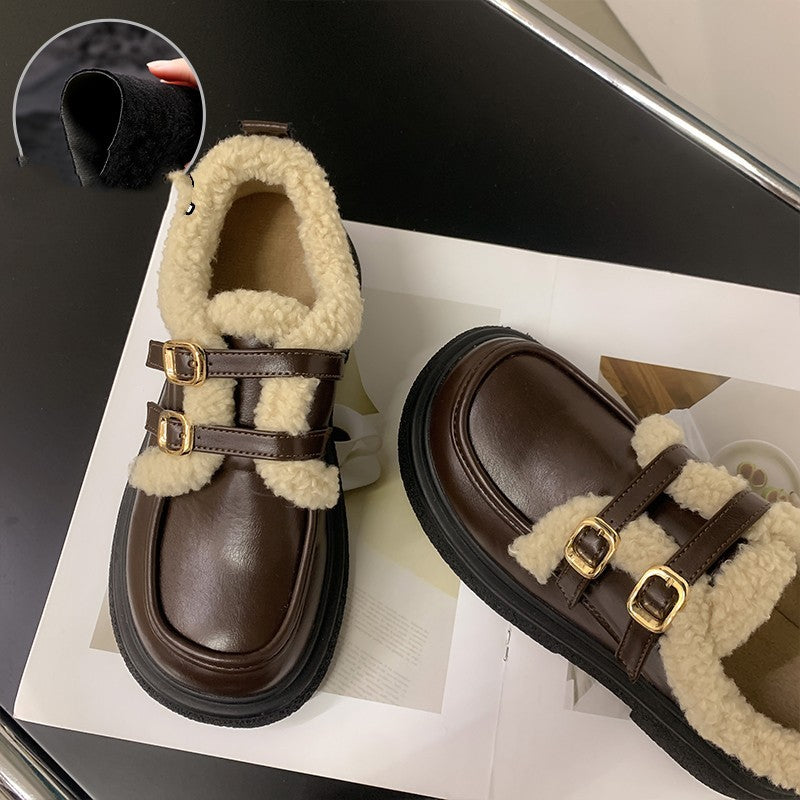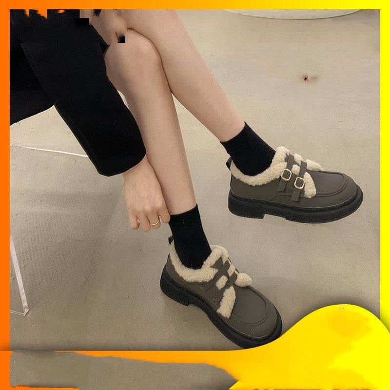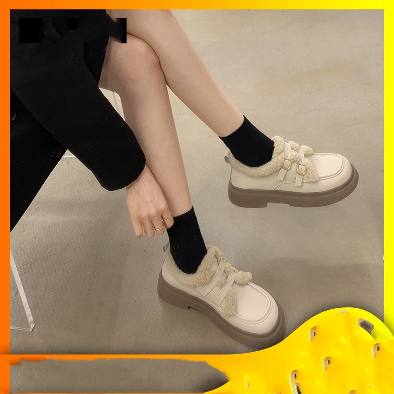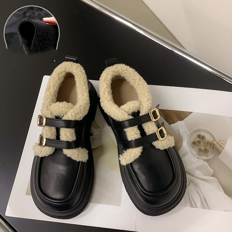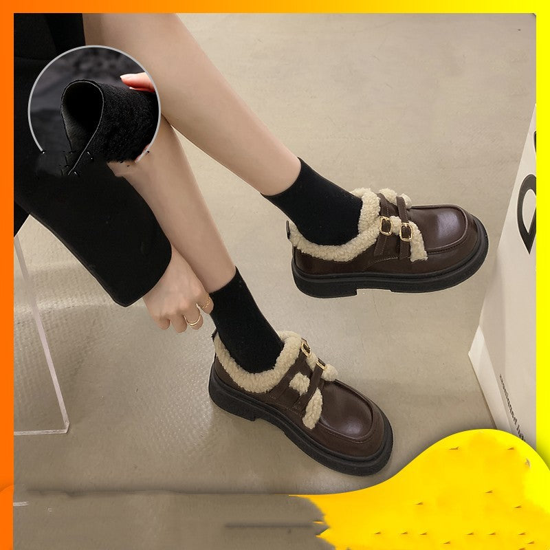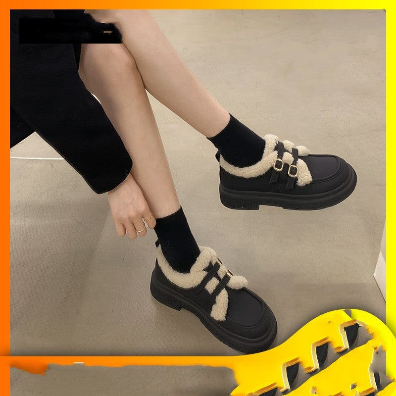 New Fashionable And Versatile Cotton Shoes Thick Bottom British Wind Non-slip Padded Small Leather Shoes