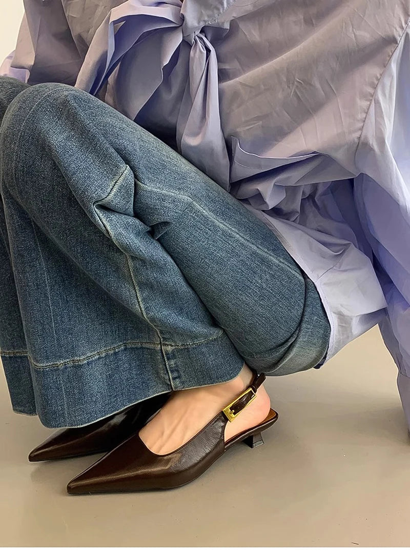 Summer Pointed Toe Women Sandals Fashion Singbacks Mules Shoes Ladies Elegant Low Heel Stripper Party Sandalias