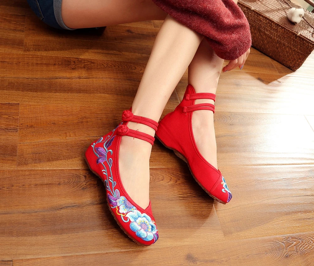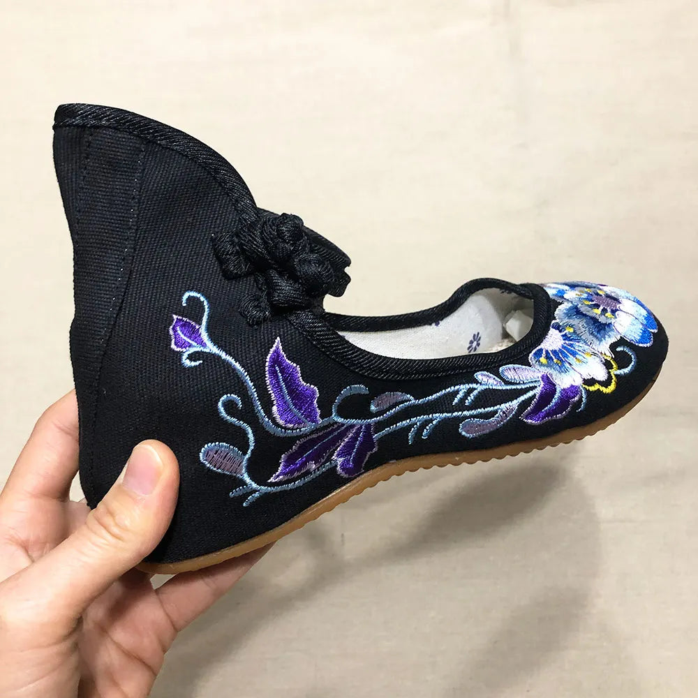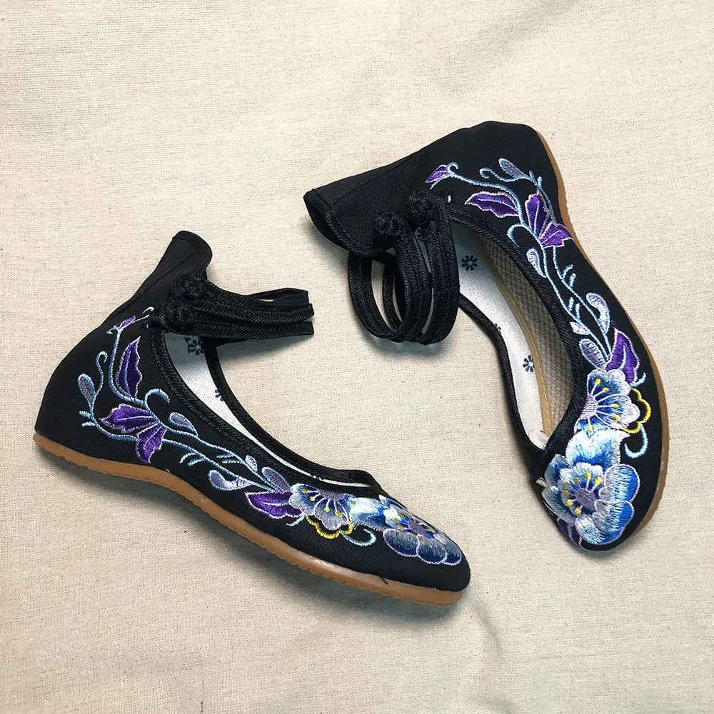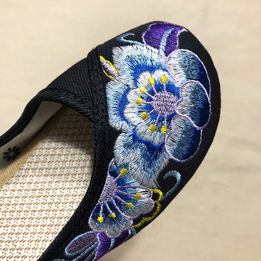 Veowalk Vintage Women Cotton Flower Embroidery Shoes Ladies Casual Chinese Style Comfortable Soft Canvas Dance Ballets Ballerina