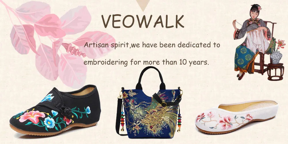 Veowalk Brand has been committed to Chinese style shoes, bags, and clothes for many years,combining designing,producing and selling, Good quality materials and professional workers, makes our products healthy and comfortable, suitable for elegant Ladies, welcome to distribute and dropship,we will provide quality products,fast order processing and excellent logistics services.