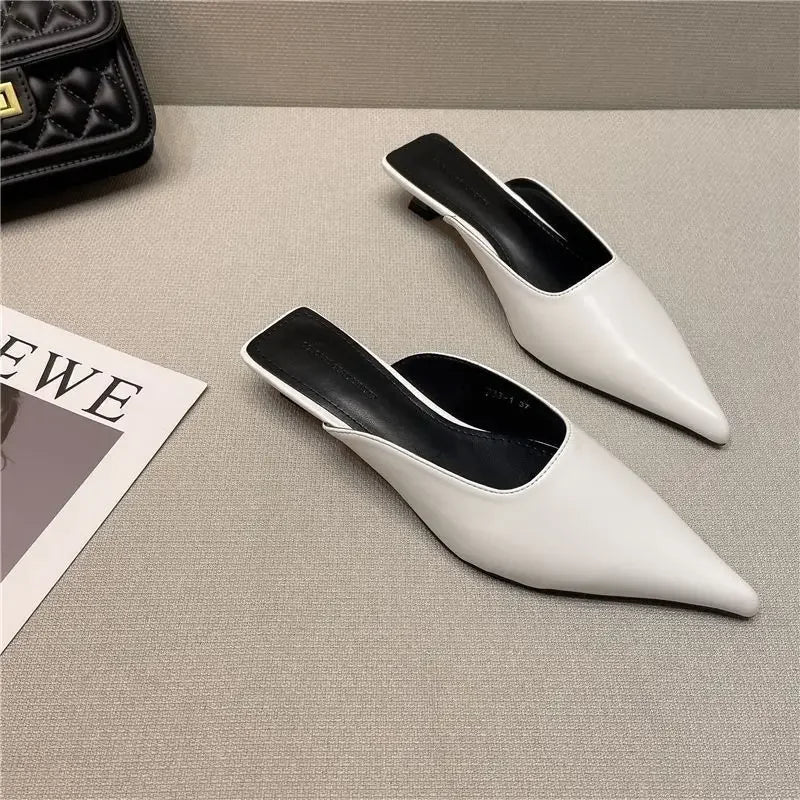 Woman Slippers Pointed Toe Outside Job Sandals Slides Mules Low Heel White Shoes for Women with Comfortable Luxury Korea Style