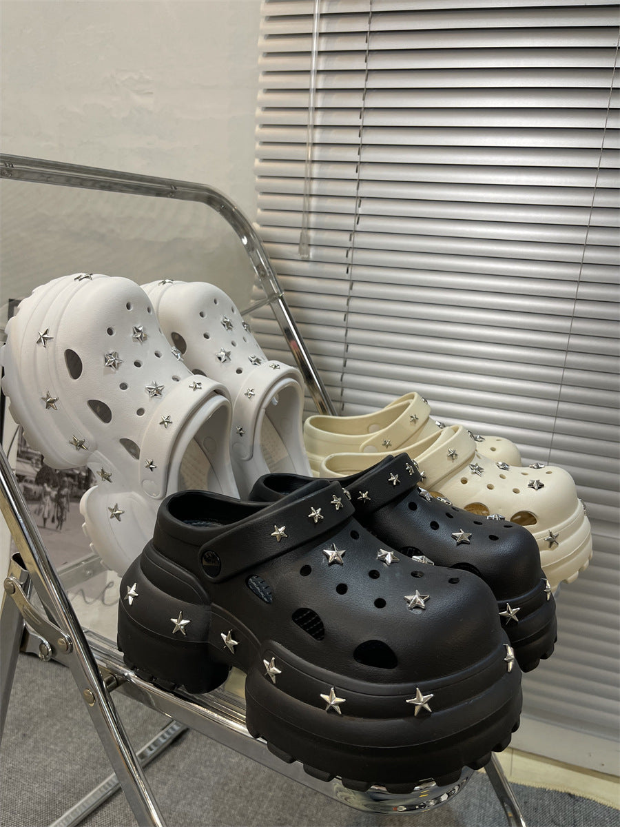 Women Summer Sandals High 10cm Heels Chunky Clogs with Star Charms Garden Shoes Waterproof Beach Pool Sandals Mules Slippers