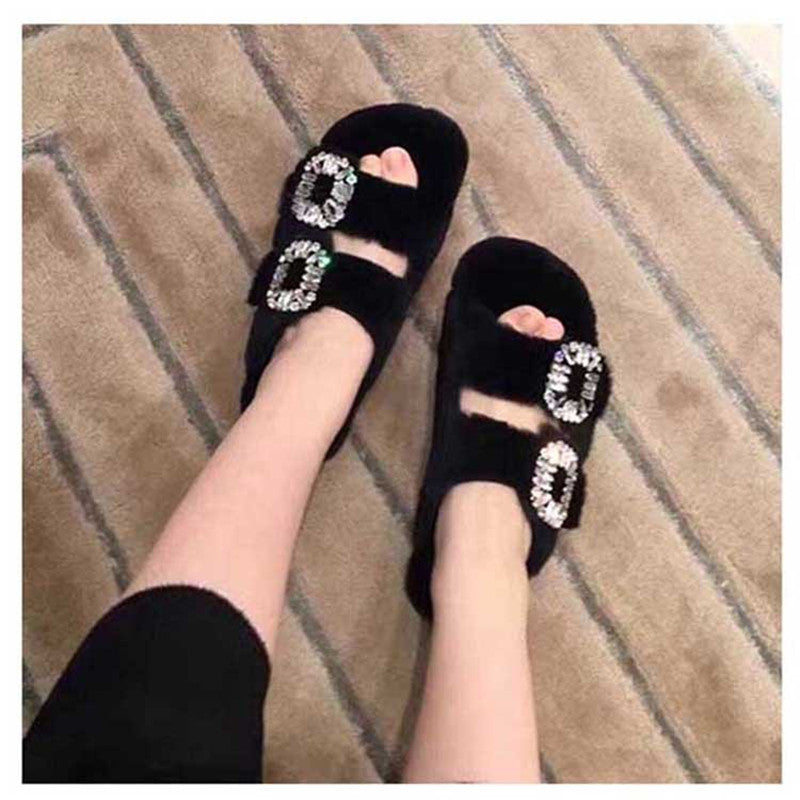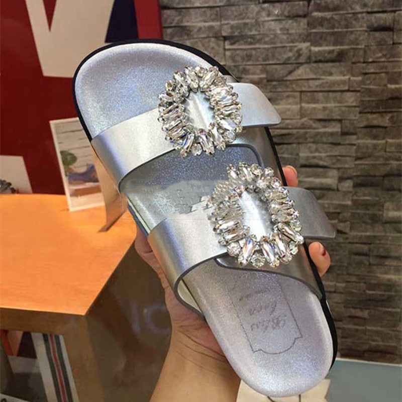 Women's Fashion Leather Rhinestone Square Buckle Flat Sandals