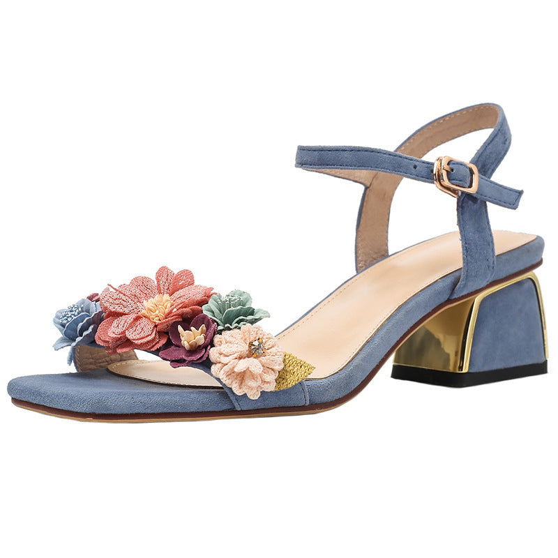 Women's Fashion Summer New Mid Heel Retro Flower Sandals